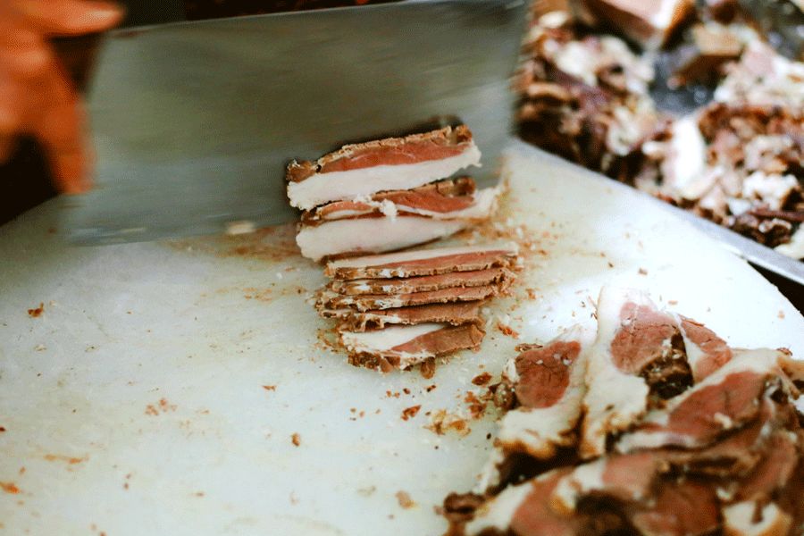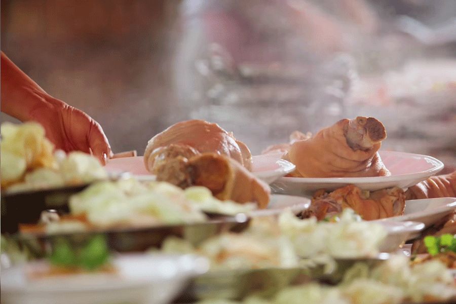 冬夜里,當(dāng)他聽(tīng)到深巷賣羊頭肉小販的吆喝聲,會(huì)立即從被窩里爬出來(lái),然后等小販在門口昏暗的油燈下給他切好,再重新鉆進(jìn)被窩,在枕上一片一片把羊頭肉放進(jìn)嘴里,一解饞癮;