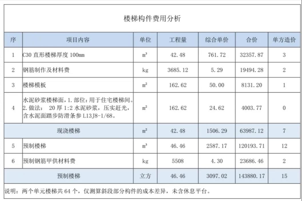 i預(yù)制樓梯單價比現(xiàn)澆樓梯單價高;