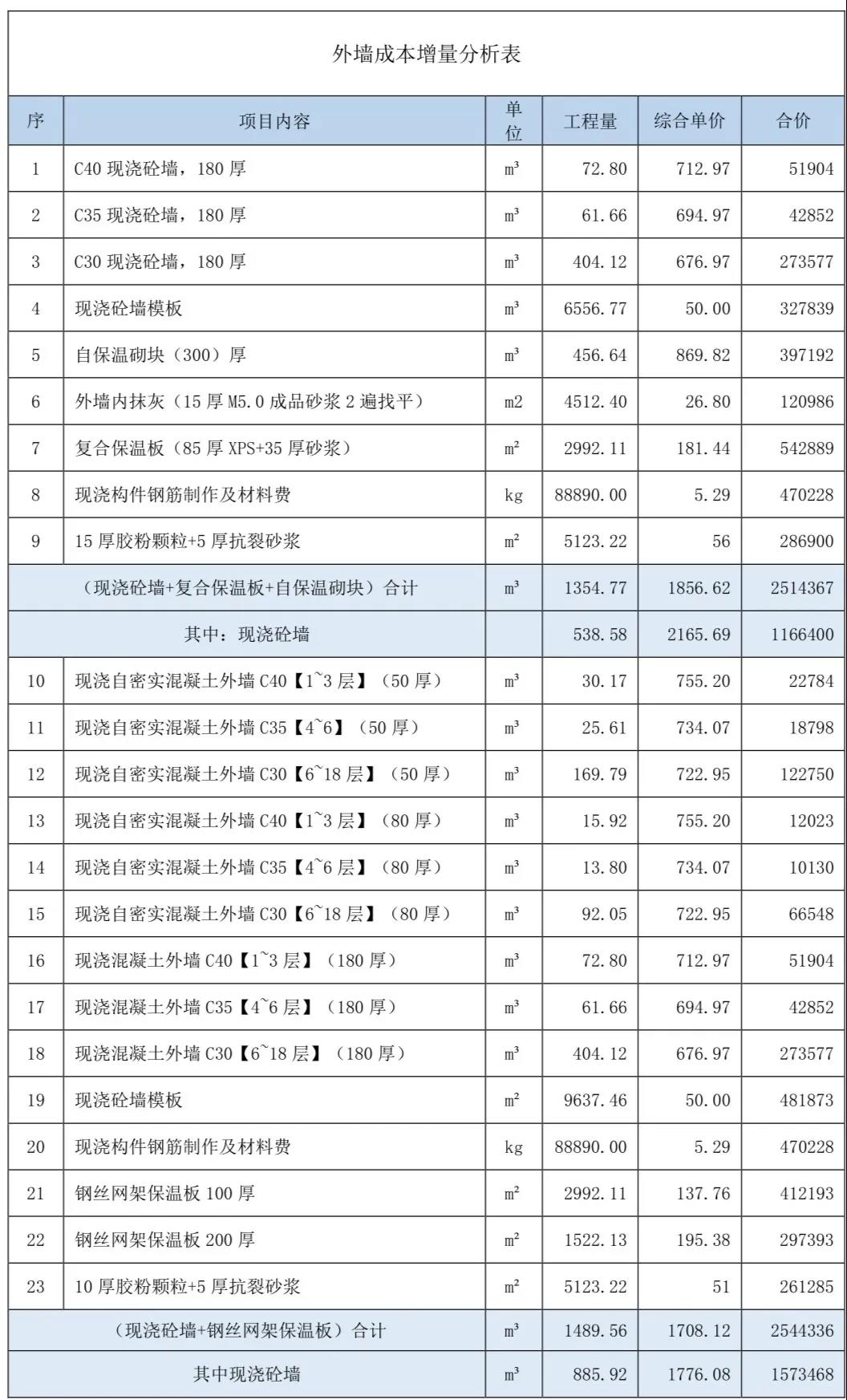以下重點分析主體結(jié)構(gòu)和維護墻、內(nèi)墻墻部分的成本增量。項目整體的成本增量還要考慮裝修和設(shè)備管線的成本增量,還要考慮設(shè)計咨詢、施工措施、結(jié)構(gòu)設(shè)計等方面的成本加因素。成本增量測算方法請點擊:以裝配式建筑的增量成本最低化為目標(biāo)的成本測算基礎(chǔ)(3.0版)